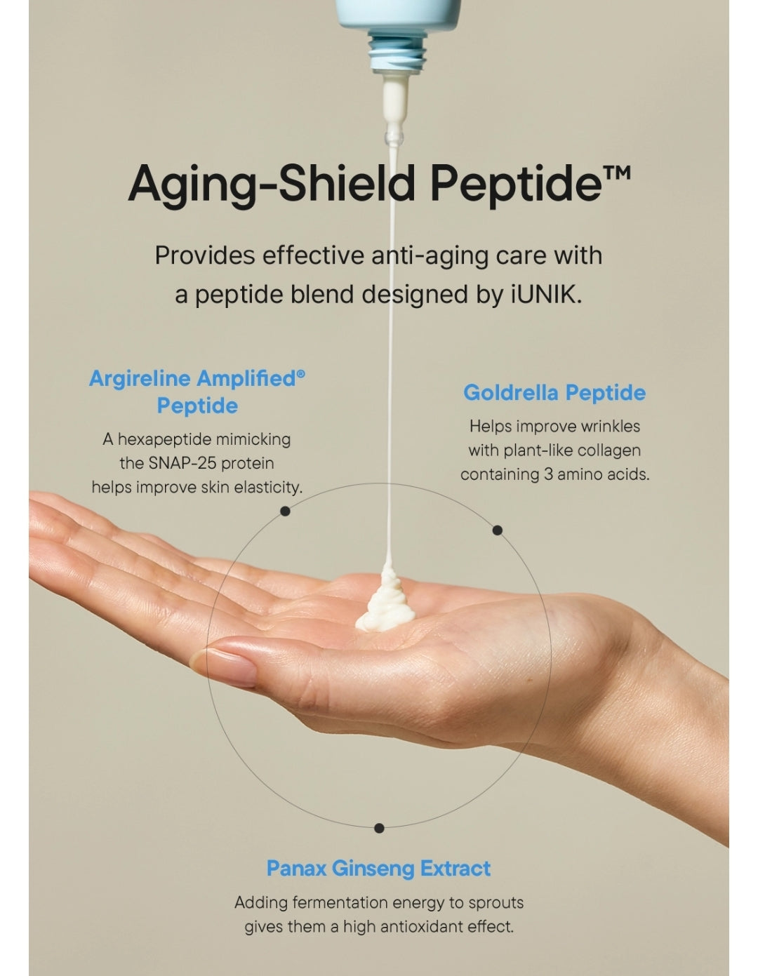 - Infused with Aging-Shield Peptide™ that contains Argireline Amplified® Peptide, Goldrella Peptide and Panax Ginseng Extract to help enhance skin elasticity and offer slow-aging effect.